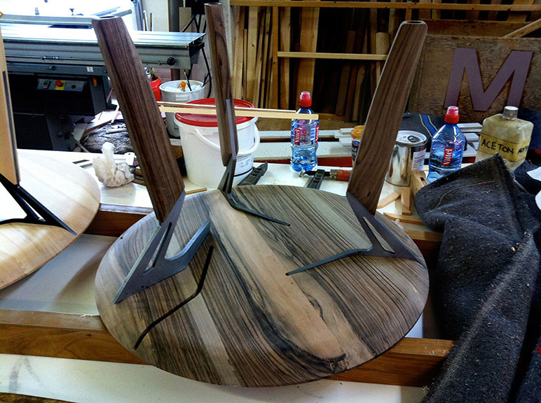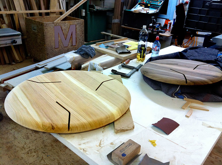 Ein einfacher Tisch mit runder Holzplatte, Tischfuss aus Schwarzstahl und Beinfreiheit ohne Ende entsteht bei mir momentan als Kundenauftrag. Und bei der Freude, die ich an ihm habe, ist er wohl auch bald Teil der Samko Kollektion… ...
